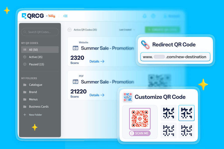 If you’ve recently visited our site, you may have noticed something new. QR Code Generator is now QRCG by Bitly. From a refreshed website and updated visuals to a new logo and brand identity, these changes reflect how our product is evolving—and mark the beginning of a new chapter as we continue investing in a better experience for our customers.