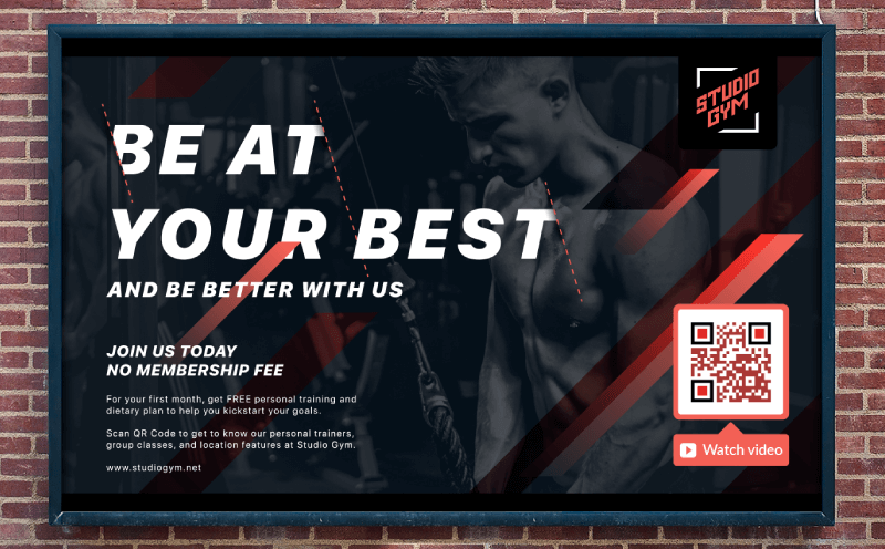 Combining QR Code tracking data with a well-segmented campaign is a recipe for success. When used effectively, it can help you optimize your conversion rates. For example, you can A/B test different aspects of QR Code marketing campaigns, such as the mediums used, time periods, their locations, or even CTAs. In the case above, a fitness studio placed a Video QR Code on a billboard ad and tested multiple ads to see which locations got the best results.