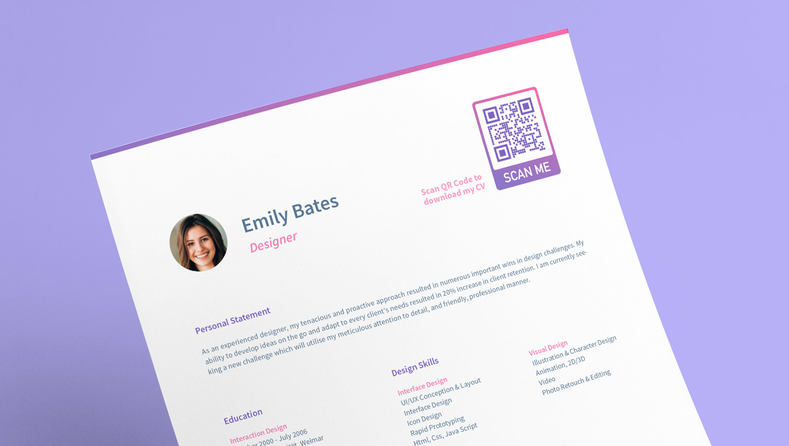 QR Code to download a digital version of a CV in PDF