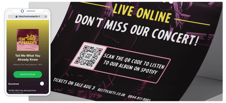 Thanks to Spotify, it’s easy to both stream music and discover concerts in your area. The benefits for promoters and event management are huge: now, it’s possible to link music streaming and concert promotion all in one place. Adding a Spotify QR Code to event posters helps you promote your music before the big gig takes place — and earn yourself some new listeners in the process.