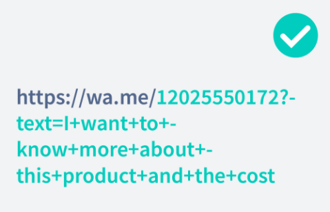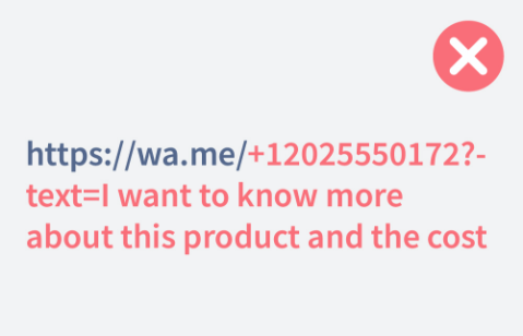 - Want to include a pre-filled message for people to send you when they scan the code? After your phone number, add ?text=your+message to the link. Replace your+message with the text you want, using a + sign instead of spaces between words. For example, “I want to know more about this product and the cost” would look like this: https://wa.me/12025550172?text=I+want+to+know+more+about+this+product+and+the+cost.